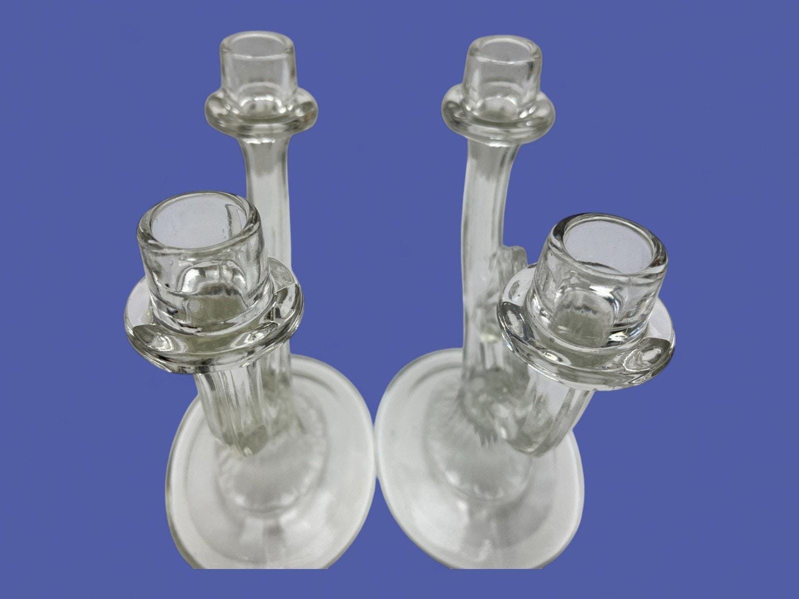 These candlesticks are perfect for adding vintage glamour to a dining table, mantlepiece, or as part of a period glassware collection. Their timeless design makes them suitable for both everyday use and special occasions.