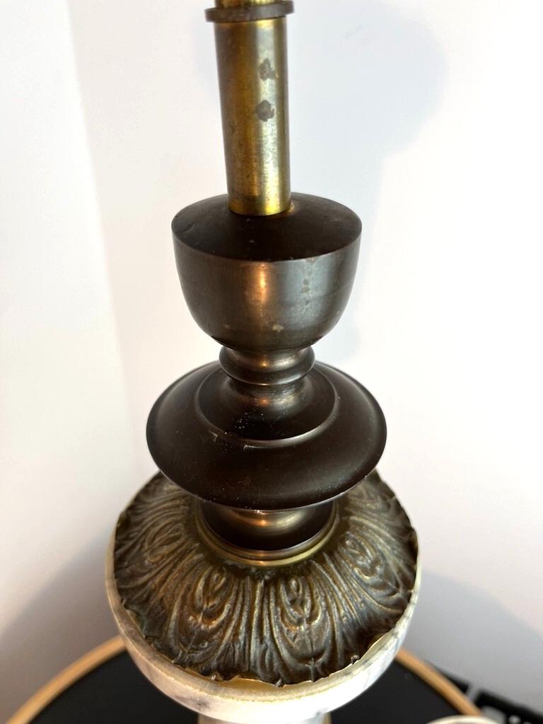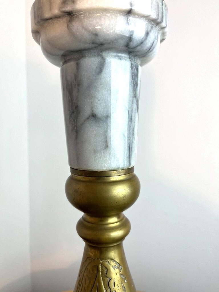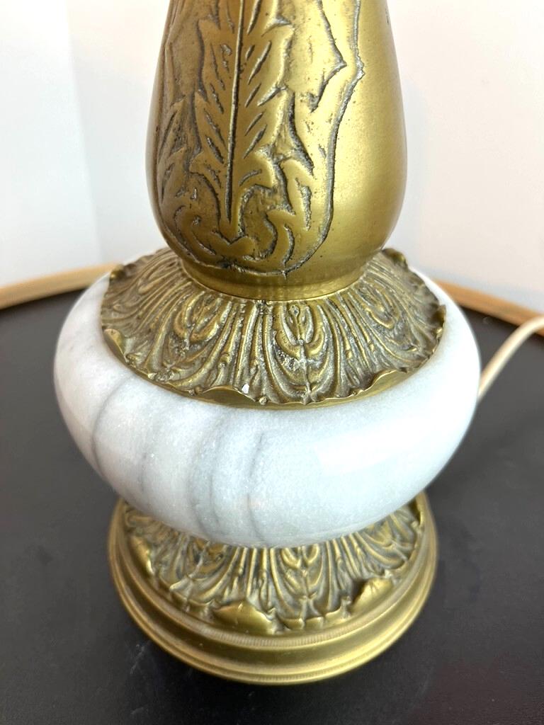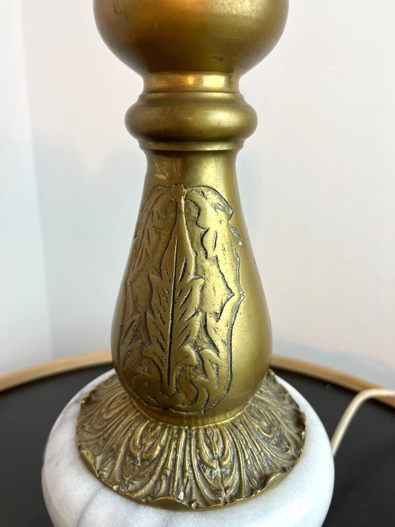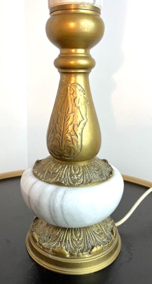 * The lamp is physically in very nice vintage condition — no visible cracks, chips, or major damage to the marble or brass surfaces. However, the lamp fitting (socket support / holder) that secures the bulb in place is missing / needs replacement. Because of this missing part, it has not been tested electrically and is sold “for repair / restoration”