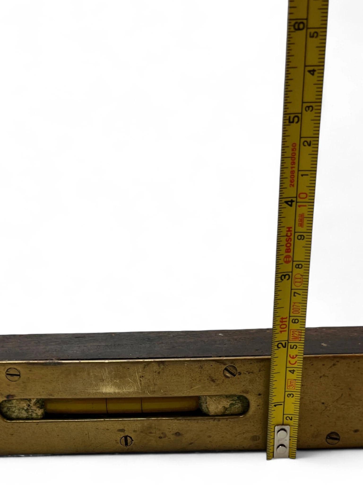 Good antique condition with age-related wear and tarnish consistent with use. Bubble vial intact and visible. Brass has developed a lovely aged finish.